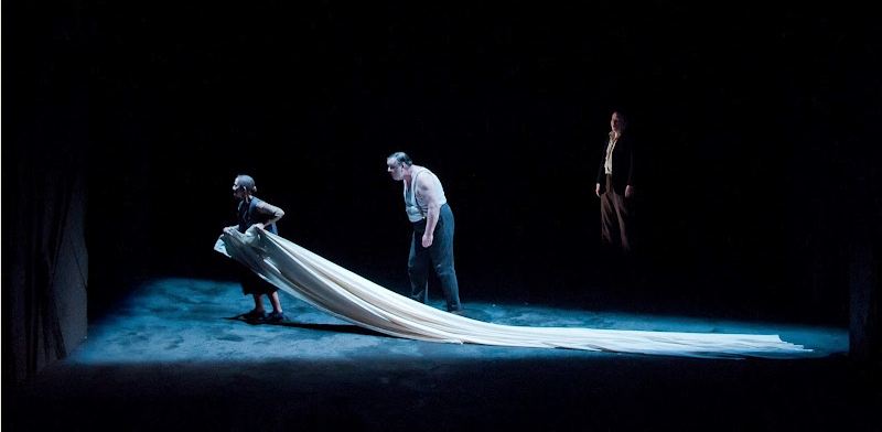 Que dire de Joël Pommerat en metteur-en-scène, si ce n'est qu'il pousse son propre texte dans un fiévreux onirisme où les acteurs sont autant de fantômes que des morts-vivants et sont enserrés entre les deux murs minéraux qui, à scène et à jardin, bordent le plateau ? Signalons un idéal travail lumineux avec de brefs noirs qui articulent fluidement les scènes et permettent de changer les quelques accessoires.