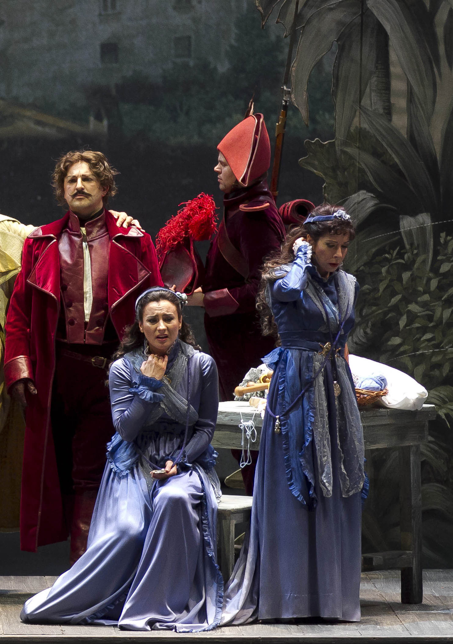 Reste qu'autant Borrelli réussissait à générer une ambiance formidable et vivante entre les protagonistes de La Bohème, autant ici il peine à entrer dans la comédie mozartienne. Étrangement, il ne parvient pas à sortir du cadre rigide de l'aspect miroir imprimé par la mise en scène conventionnelle d'Ettore Scola. Les gestes de Fiordiligi se calquent sur ceux de sa sœur Dorabella et ceux de Guglielmo sur ceux de Ferrando. Même les deux personnages « électrons-libres » que sont Don Alfonso et Despina semblent parfois prisonniers de cette convention.