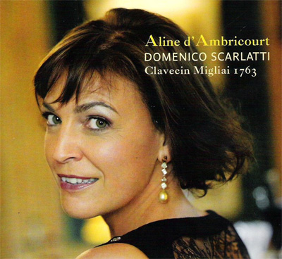 Domenico Scarlatti (1685-1757) : Sonates pour le clavier K 24, K 27, K 46, K 69, K 141, K 144, K 159, K 208, K 215, K 216, K 260, K 457, K 466, K 474, K 511, K 531. Aline d’Ambricourt, clavecin italien Migliani (1763). 1 CD Clavecin.com INT 221.241. Code barre 3576072212414. Enregistré en décembre 2011 en l’ancienne abbaye cistercienne de Valloires. Livret bilingue français/anglais. Durée totale 68’49’’.
