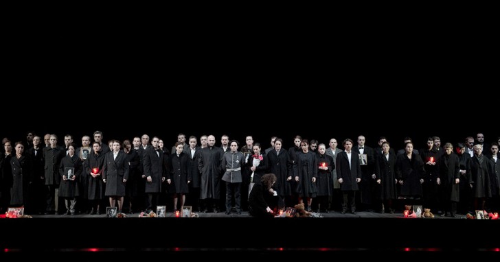 Maniant mieux les foules que les individus (les brusques concentrations du chœur d'un angle de la scène à l'autre sont magnifiques autant qu'impressionnants), s'appuie sur ces masses en mouvement pour mieux immobiliser les individus pris dans leurs tourments et leurs peurs. Difficile pourtant de compter sur l'adresse scénique d'une trop occupée à chanter plutôt qu'à incarner ce personnage en contradiction totale avec la personnalité profonde de la chanteuse. Seul moment « particulier » de cette mise en scène, les ballets parodiques de l'histoire de Macbeth imaginés par le chorégraphe Thomas Wilhelm dont les mouvements de danse sont plus intéressants que ce qu'il tente de raconter.