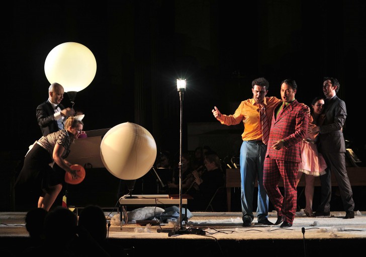 La mise en scène de Stephen Grögler utilise efficacement l'espace oblong, et les meubles de style années 1980-90, incluent la lumière (des lampes-globes et halogènes manipulés par des chanteurs) rapprochent l'intrigue de notre quotidien, ou encore, du théâtre du boulevard. Là, il n'y a aucun élément qui choque, la situation est seulement modernisée mais reste tout de même dans le cadre classique du « salon ».
