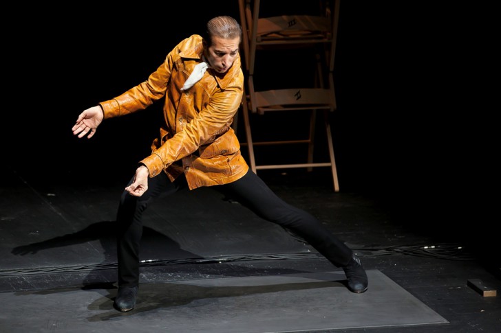 Villeurbanne. Théâtre national populaire, Salle Roger Planchon. 16-IX-2012. Israel Galvan, La Curva, pièce pour un danseur et trois interprètes. Israel Galvan, conception artistique & chorégraphie ; Sylvie Courvoisier, composition originales [hormis la musique flamenca] ; Txiki Berraondo, mise-en-scène et dramaturgie ; Rubén Camacho, lumières. Avec : Israel Galvan, danse ; Ines Bacan, chant ; Bobote, rythmes ; Sylvie Courvoisier, piano.