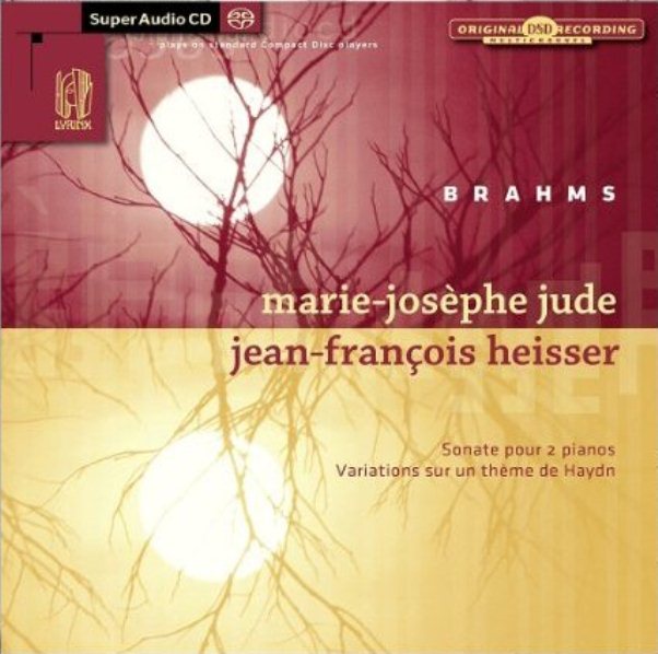 Johannes Brahms (1833-1897) : Sonate pour deux pianos op.34b ; Variations sur un thème de Haydn op.56b. Marie-Josèphe Jude, Jean-François Heisser, piano. 1 CD Lyrinx LYR 2243. Code barre : 3700232222436. Enregistré en janvier 2010 à la Chapelle du Méjan (Arles). Notice bilingue (français, anglais) très bonne. Durée totale : 61′.