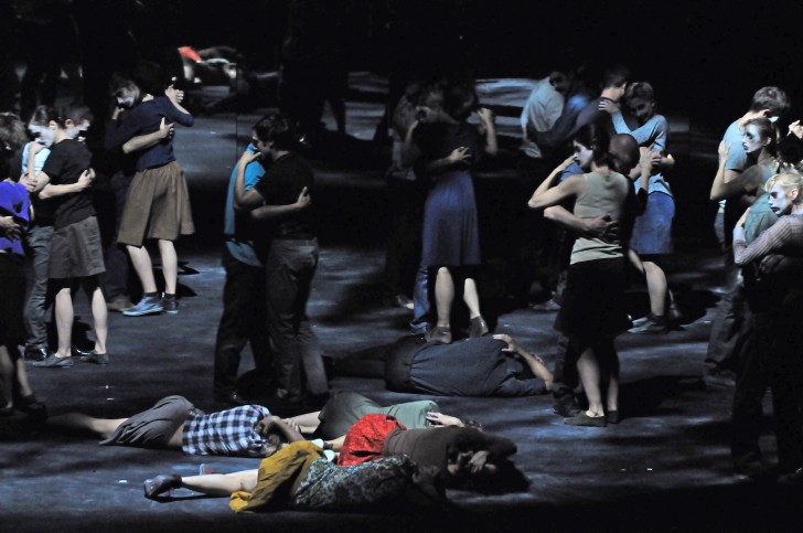 Le dispositif choisi par Maguy Marin et ses co-créateurs (mur de miroirs, lumières intermittentes, piano mécanique, musique sourde et son cahotique) instaure un climat oppressant, distillant une étrange beauté fascinante et vénéneuse. Cette puissance repose avant tout sur l'intense présence des 28 interprètes du Ballet de l'Opéra de Lyon, auxquels la chorégraphe rend un merveilleux tribut.
