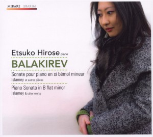 Mily Balakirev (1837-1910) : Fantaisie, d’après des thèmes de l’opéra de Glinka « Une vie pour le Tsar » ; Au jardin, étude-idylle en ré bémol majeur ; Toccata ; Sonate pour piano en si bémol mineur ; L’Alouette (transcription pour piano seul d’une romance de Glinka) ; Islamey, fantaisie orientale op.18. Etsuko Hirosé, piano. 1 CD Mirare MIR 181. Code barre : 3760127221814. Enregistré en février 2012 à la Cité Nantes Events Center (Nantes). Notice trilingue (français, anglais, japonais) excellente. Durée totale : 61′