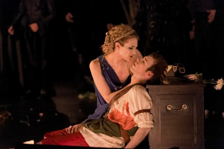 Luxembourg, Grand-Théâtre. 9-XI-2012. John Blow (1649-1708) : Venus and Adonis (précédé de l’Ode à Sainte Cécile), masque pour le divertissement du roi en trois acte avec prologue, créé vers 1683. Mise en scène : Louise Moaty. Chorégraphie : Françoise Denieau. Scénographie : Adeline Caron. Costumes : Alain Blanchot. Lumières : Christophe Naillet. Avec : Céline Scheen, Vénus ; Marc Mauillon, Adonis ; Romain Delalande, Cupidon. Maîtrise de Caen (chef de chœur : Olivier Opdebeeck). Les Musiciens du Paradis (direction artistique : Alain Buet), direction musicale : Bertrand Cuiller