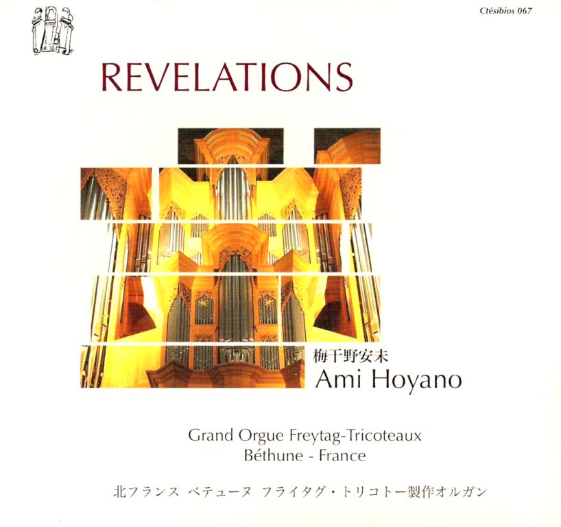 Déjà remarquée lors d'un récent enregistrement sur les deux orgues Riepp d'Ottobeuren en Allemagne, en compagnie de Sarah Kim, Ami Hoyano nous revient ici en soliste sur l'orgue nordique allemand de Béthune. Le titre même de Révélations en dit long sur les intentions de l'éditeur Ctesibios, largement attiré par le monde de l'orgue. Les révélations sont en effet multiples dans ce disque : L'orgue tout d'abord, qui est une parfaite inspiration des instruments baroques d'Allemagne du nord, magnifiés au XVII° siècle par Arp Schnitger. Depuis longtemps, on a pu apprécier les constructions de la firme Freytag, en complicité avec Jean-Marie Tricoteaux, maitre des mesures et de l'harmonisation générale de ces splendides réalisations. On est heureux de constater qu'un tel projet ait pu voir le jour dans notre pays. Ensuite, une autre révélation, c'est un répertoire complètement adapté à l'esthétique marquée d'un tel instrument, logiquement des pièces baroques et classiques jusqu'à Mozart, mais aussi, révélation de taille, un répertoire contemporain, voire avant-gardiste. Enfin, autre révélation, l'artiste, heureuse élue, ambassadrice pour le rayonnement de l'orgue de Béthune, Ami Hoyano, japonaise, excellente interprète, est venue en France et en Europe perfectionner son art auprès des plus grands maîtres.