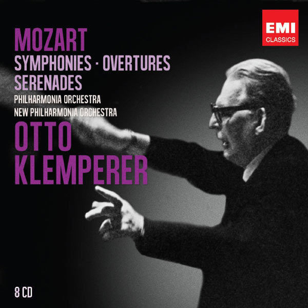 Si tous ces enregistrements nous sont bien familiers, peut-être ceux consacrés à l'œuvre orchestrale de Mozart nous le sont moins, car a priori la conception interprétative monumentale de Klemperer semblerait moins bien convenir au style de Mozart qu'à celui de Beethoven. Eh bien, il n'en est rien ! L'audition du legs mozartien de Klemperer est une surprise absolue ! Le sévère producteur de EMI Walter Legge, lui-même d'abord sceptique quant aux qualités mozartiennes de Klemperer, fut entièrement conquis dès sa toute première gravure les 8 et 9 octobre 1954 de la ravissante Symphonie n°29 en la majeur K. 201, et son appréciation positive se confirma lorsque Klemperer enregistra dans les années 50 les Symphonies n°38 « Prague », 39, 40 et 41 « Jupiter ». Cette totale approbation est probablement due au fait que Klemperer semble utiliser ici un effectif orchestral limité à une quarantaine de musiciens, et qu'il pratique systématiquement la disposition opposée gauche-droite des premiers et seconds violons (aussi utilisée dans Beethoven), caractéristiques rendant ainsi la texture orchestrale particulièrement transparente, alliée à une précision due à la qualité instrumentale de haut niveau du Philharmonia Orchestra.