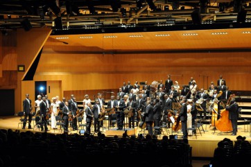 Le samedi aurait dû être consacré à une nuit de danses et de musiques avec la participation des groupes de danses et de l'orchestre symphonique kimbanguiste de Kinshasa en République démocratique du Congo. Tristement, l'intégralité des danseurs et une partie de l'orchestre ne purent recevoir de visa les autorisant à entrer, pour quelques jours, dans la citadelle de l'espace Schengen. Attitude misérable et inquiétante d'un continent à la dérive… Marc Monnet, directeur du festival, prit la parole pour présenter des extraits vidéos qu'il avait filmé lors d'un séjour en RDC. On put se rendre compte, amers, de ce que le public avait raté. La soirée, fut heureusement animée par l'orchestre symphonique de Kinshasa et son directeur musical : Armand Wabasolele Diangienda. Fondé, en 1994, par un pasteur de l'église congolaise Kimbanguiste afin de fédérer les fidèles, cette formation est l'unique orchestre symphonique d'Afrique centrale. Il compte désormais 200 membres et même une section « junior » destinée aux jeunes archets. A travers un parcours comprenant des valses et marches de Strauss, des danses de Brahms, une symphonique congolaise, un mouvement de « l'inachevée » de Schubert, les valeureux musiciens se sont surpassés pour offrir au public une soirée émouvante, couronnée par de longues acclamations et par l'intervention de la princesse Caroline de Monaco, qui remit une harpa au chef d'orchestre.