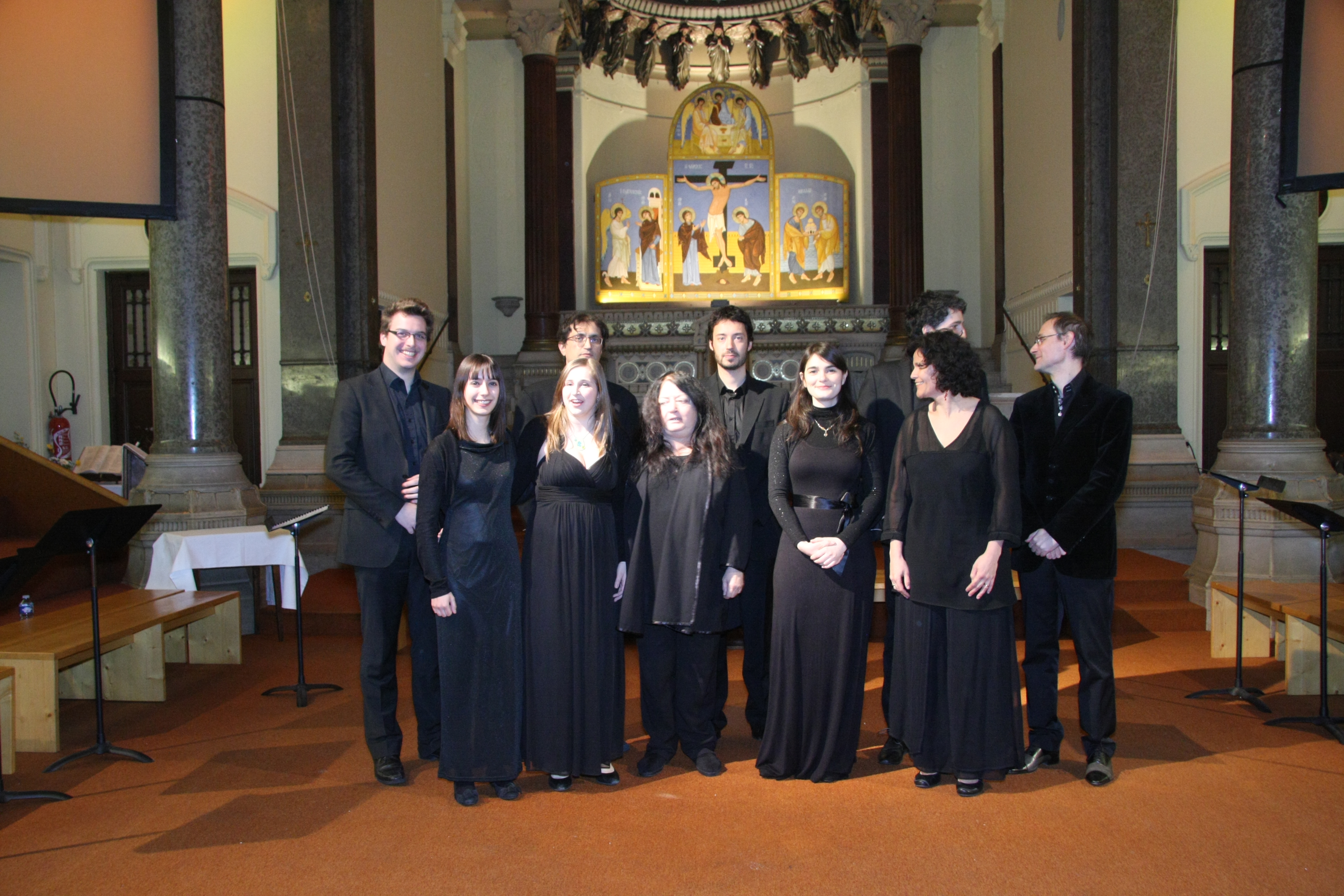 Gallus est, sans aucun doute, le moins connu des compositeurs du programme. Né à Ribnica en Slovénie, formé à Rome et au monastère cistercien de Sticna, il fut maitre de chapelle à Olomouc et mourut à Prague. Bizarrement, il porta plusieurs noms ou pseudonymes. Son Opus Musicum, composé de 4 livres de messes, édité de 1586 à 1591, comprend 374 motets. Disposant d'effectif suffisant, il composa souvent pour 6, 8 et 12 voix. Et c'est cette polyphonie qui constitue la seconde partie du concert. Le Miserere mei deus à 6 est superbement chanté avec un vrai plus : la voix de Christel Boiron qui ressort…agréablement. Une démonstration ! Les pièces suivantes sont en écho. On n'est pas encore à Venise mais ça y ressemble… Le Christus surrexit à 6, d'influence tchèque, n'est pas assez jubilatoire. Dans le Jesu nostra redemptio pour voix égales, Musica Nova restitue fort bien une ambiance sombre, tendue, mais vivante. Sans nul doute, la plus belle pièce du concert. L'Alleluia cantate Domino à 12 termine le concert : une dentelle de joie. Les spectateurs conquis par cette musique ancienne et par l'interprétation de Musica Nova ont longuement applaudi ce premier concert du Festival Chœurs en Printemps.