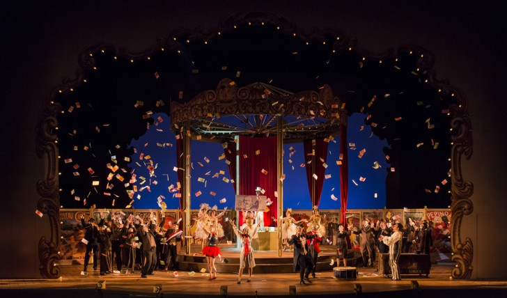 La mise en scène, joyeuse, enlevée, se base sur le monde des forains, avec un manège tournant (bruyamment, hélas) qui se transforme au fur et à mesure que l'action avance, des chasseurs, des chiens, des portes qui claquent, et une troupe de chanteurs-acteurs de premier ordre. , et Antoine Normand sont parfaitement dans leur élément !