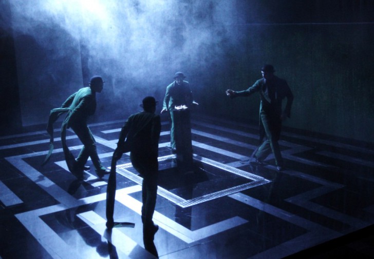 Contrairement au spectacle récemment monté à Nancy, lequel était basé sur l'excès et sur la démesure, le spectacle proposé ici concentre l'action sur les confrontations directes entre les protagonistes. Le décor est réduit à sa plus simple expression, délimité par trois murs vert foncé censés représenter autant les forêts d'Olympie et la force brute de la nature que le pouvoir implacable des dieux qui s'acharnent contre les hommes. Une trouée en fond de scène constitue un point de fuite conduisant à un ailleurs indéfinissable. Le plancher, d'un noir brillant, épouse la forme d'un labyrinthe, visiblement le symbole du dédale émotionnel dans lequel évoluent les personnages. À certains moments, des nuages de fumée s'échappent du sol, vision transposée de l'inconscient jamais apaisé de personnages implicitement comparés à un volcan sur le point d'entrer en éruption. Aux instants de tension extrême, c'est sur une frêle chaloupe qu'on voit les protagonistes ballottés au gré des flots déchaînés. Aux sept chanteurs solistes, impeccablement dirigés, se mêlent quatre choristes à la fonction bien particulière : gardiens du destin, à la fois acteurs et observateurs, manipulateurs et alliés des dieux dans ce jeu d'échecs cosmique, tour à tour sarcastiques et compatissants, ils semblent déplacer les pions de la destinée afin de mieux se gausser des heurts et des déboires de personnages qui n'en sont au final que plus émouvants dans leur humanité meurtrie.