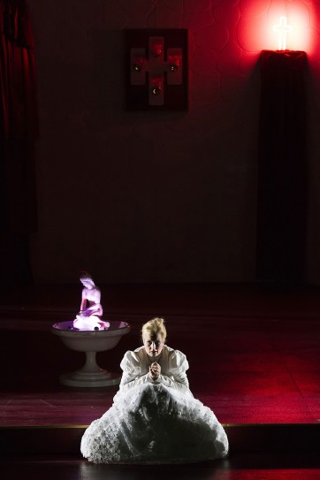 Donc rien de scandaleux dans la mise en scène de Jossi Wieler et Sergio Morabito. Tout juste un collé de scènes sans parti pris, ni réelle direction narrative. On ne sait pas où se situe l'action, ni comment elle se développe dans le temps. Est-on sous l'eau, sur l'eau ? Devant ce décor (très laid) d'un gigantesque spa de bois avec une scène tournante sans signification particulière, toute la poésie lyrique et tragique de Rusalka disparaît. Tout comme le rêve, le conte, tout cela s'embourbe sous « l'intellectualisme pompeux qui domine la scène théâtrale européenne » comme le remarque très justement notre confrère du Telegraph, Rupert Christiansen, dans sa critique de ce même spectacle. Accompagné de la laideur, de l'inefficacité et de l'incohérence des costumes, ce spectacle sombre dans le quelconque et devient sans intérêt. Rien de choquant, en effet, mais rien d'enthousiasmant non plus. Adieu le rêve esthétique qu'un tel opéra devrait tout naturellement susciter. Une armée « d'artistes », costumiers, metteurs en scène, scénographes, chorégraphes pour nous faire croire à d'éventuels fantasmes inassouvis et déçus d'une amoureuse, ou pour tenter de nous entrainer derrière une démonstration psychanalytique oiseuse de troubles psychologiques attribués au compositeur ou à son librettiste qui auraient écrit une œuvre autre que celle qui est. Quel gâchis !