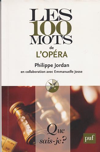 Les 100 mots de l’opéra. Philippe Jordan, en collaboration avec Emmanuelle Josse. PUF, collection Que sais-je ? 127 pages. 9€. ISBN 978-2-13-061757-0. Code barre 9 782130 617570. Dépôt légal avril 2013.