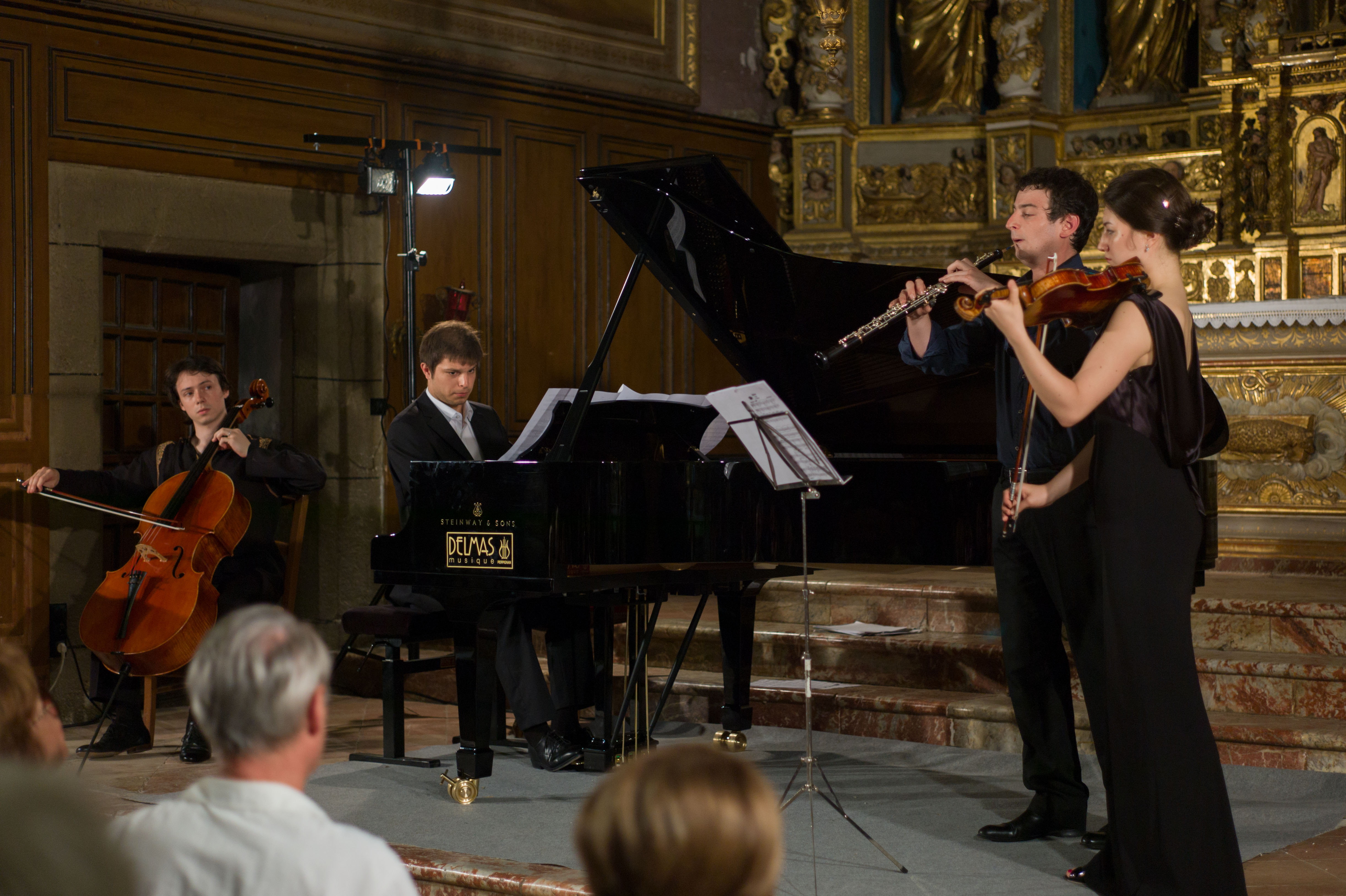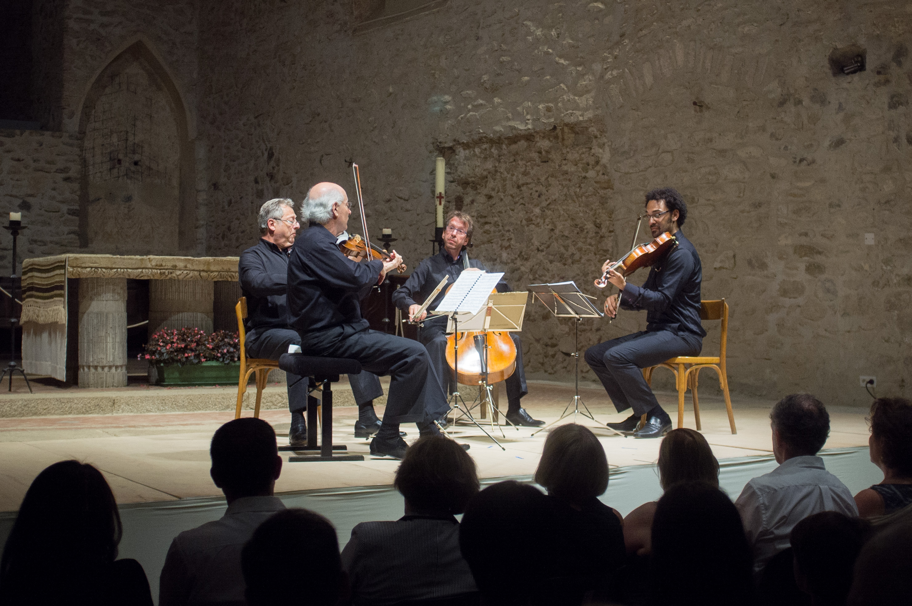 Le vendredi 2 août à 17h, d'abord un programme léger mais plein de douceur, intitulé « jeux » au Casino de Vernet-les-Bains (lieu oblige !) avec des œuvres de Johann Sobeck (Grand duo sur Don Giovanni pour cor, clarinette et piano), de Mozart (Trio des quilles) et de Mendelssohn (Lieder pour deux clarinettes et piano), délicatement jouées par Karl Leister, Michel Lethiec et Yves Henry. A 21h, la soirée s'annonce enthousiasmante. En effet, deux quatuors d'envergure mondiale, les quatuors Fine Arts et Talich jouent successivement sur la même scène de l'Abbaye Saint-Michel de Cuxa. Le Fine Arts Quartet interprète le Quatuor en ré majeur op. 71 n° 2 de Haydn, aérien, suivi de celui de Grieg, pathétique à souhait pour le premier mouvement, et dansant, joyeux, parfois grave pour les trois derniers mouvements. En deuxième partie, les quatre musiciens du Quatuor Talich livrent une version passionnante et passionnée du Deuxième Quatuor de Dimitri Chostakovitch, à la fois pleine de fougue et de poésie. C'est effectivement une rencontre musicale intense entrainant les mélomanes dans la profondeur de l'art musicale.