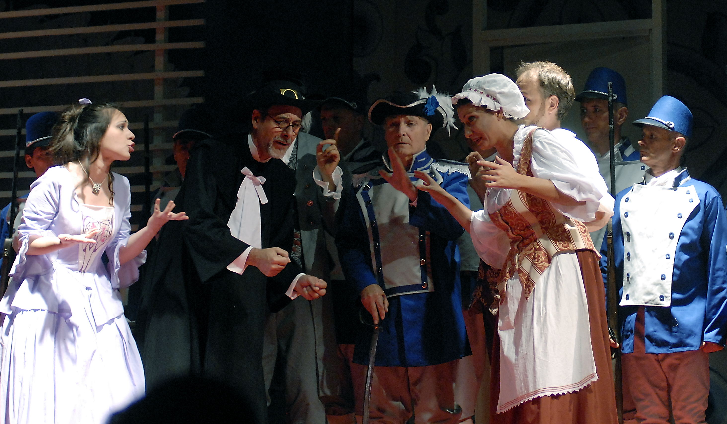 Passée par les Masterclasses de Pesaro, Michela Antenucci chante avec exactitude, David Ferri a un beau timbre enjôleur, émouvant dans l'air Se il moi nome saper…, et Ferrucio Finetti parfait dans l'air de Figaro, donne toute son ampleur au thème très actuel de l'air « All'idea di quel metallo » aidé par quelques jeu de mot de la metteuse en scène Roberta Mattelli, Stefano Miliani de sa voix onctueuse réussit une Calomnie drôle et insidieuse… Chiara Giudice leur vole à tous la vedette dès qu'elle apparaît malgré le petit rôle de Berta et son « Il Vecchiotto Cerca Moglie », porté par une voix aérienne, est parfait.