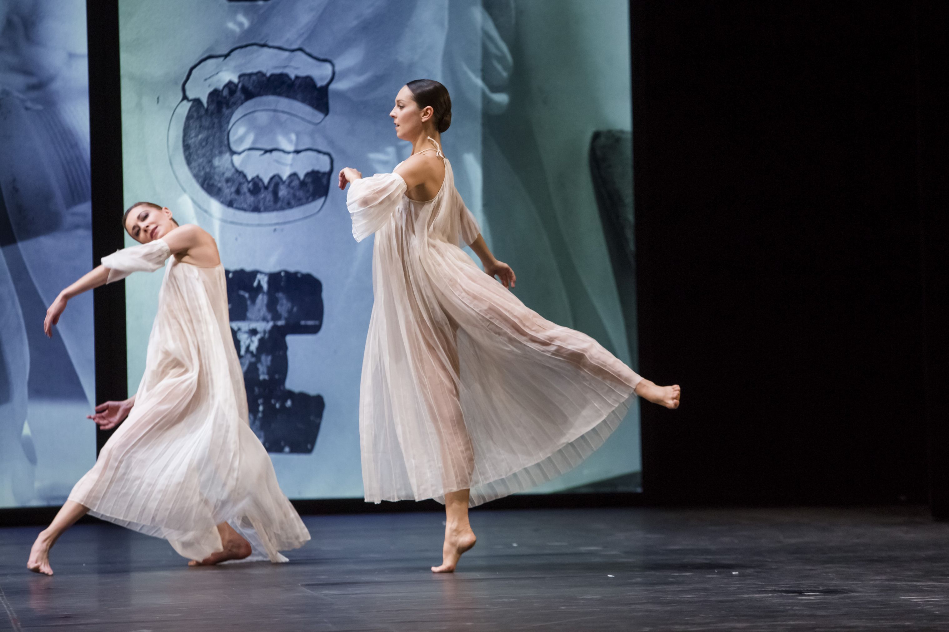 Changement de style avec « Glacial Decoy », un ballet dans le silence – ou presque, compte tenu du bruit du projecteur diapo qui fait défiler des images en fond de scène. Cette pièce délicate et puissante offre un fort contraste entre la radicalité des photos en noir et blanc signées Robert Rauschenberg et la fluidité des mouvements chorégraphiques de Trisha Brown. Une frise de jeunes femmes, vêtues de plissés à l'antique, passent de cour à jardin, disparaissent et apparaissent du champ de la scène. Joliesse, classicisme de l'interprétation, quatre très belles danseuses (Laurence Laffon, Caroline Robert, Letizia Galloni, Juliette Hilaire) pour fêter les dix ans de l'entrée de cette pièce au répertoire du Ballet de l'Opéra de Paris.
