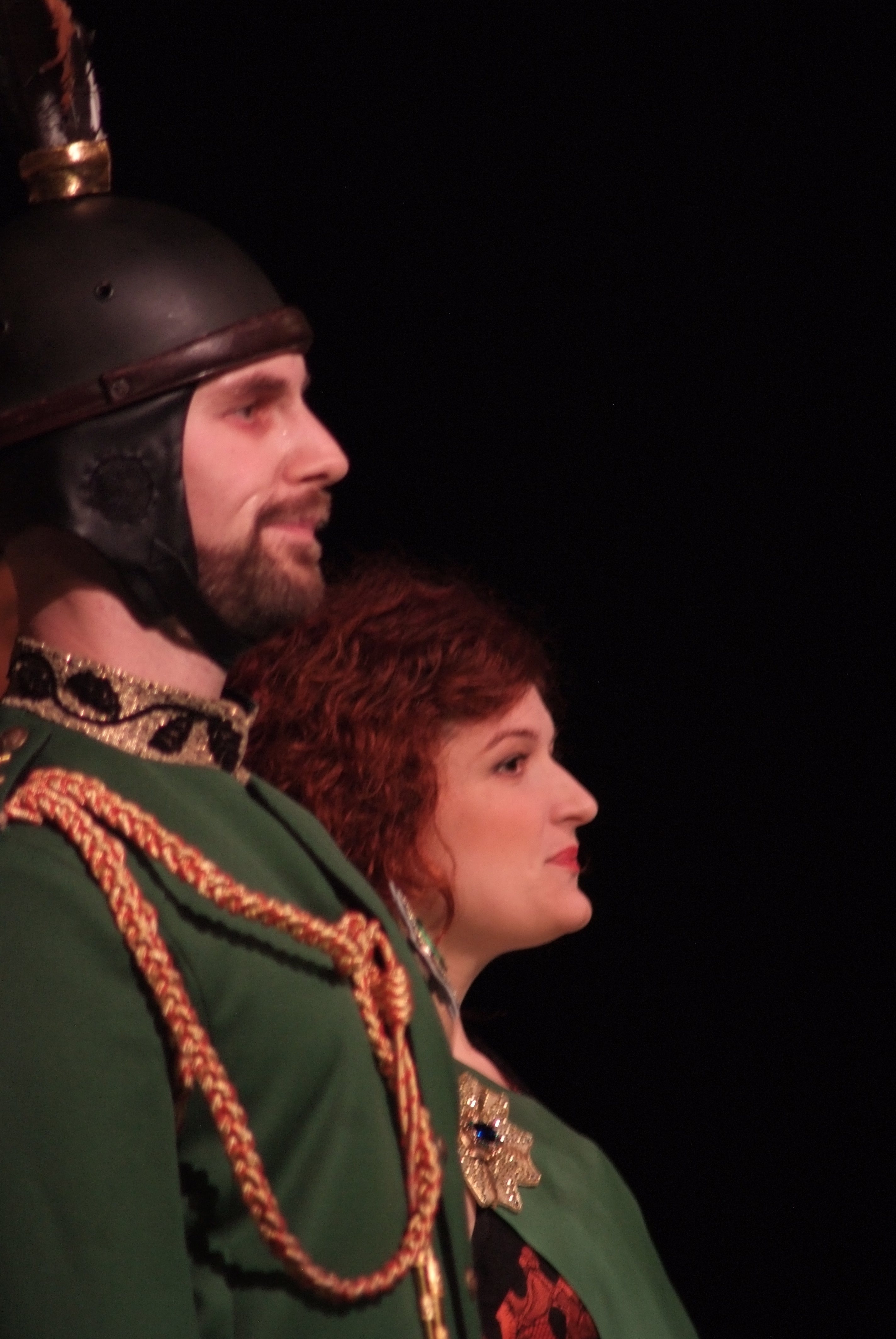 Côté chanteurs-acteurs, on ne louera jamais assez Isabelle Druet qui incarne la Grande Duchesse. Bien sûr, il y a sa voix aux teintes chaudes et veloutées, exquise dans les aigus, mais son talent de comédienne fait d'elle un délicieux personnage, mi-adolescente mi-femme (la Grande Duchesse a vingt ans), que propose la mise en scène de Philippe Béziat, tandis qu'une autre lecture aurait poussé à l'extrême l'érotisme fantasmé de la jeune femme suggéré par le livret d'origine. A ses côtés, François Rougier assume totalement le rôle de Fritz, toujours la tête dans les nuages, avec ces regards qui se perdent dans le vague. S'il a montré un peu de fatigue vocale vers la fin, le timbre clair de sa voix est agréablement complémentaire avec celle de sa partenaire. Le baron Puck, interprété par Flannan Obé, est tellement méchant, tellement sinistre et tellement drôle à la fois qu'on s'attache immédiatement à lui ; ses grimaces sont si artistiques qu'on est forcément admiratif devant l'élasticité de ses muscles faciaux ! Sa diction et son jeu d'acteur – y compris l'expression de ses mains – sont également d'une grande qualité artistique et on attend de voir dans quel rôle il va paraître prochainement. Le général Boum et le prince Paul, formant le trio conspirateur avec Puck, ont chacun l'air benêt à leur manière eux aussi, caractère très bien rendu et très bien chanté par Antoine Philippot et Olivier Hernandez. Dans l'ensemble, nous ne pouvons qu'apprécier le merveilleux travail sur la diction dans le chant aussi bien que dans les paroles. Mille bravos à tous les chanteurs, et bravos aussi à Christophe Grapperon qui dirige cette bande déjantée dans une cacophonie joyeuse.