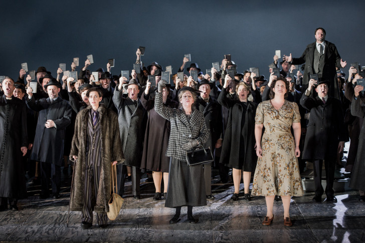 En laissant à l'orchestre le soin de suggérer la mer, la mise en scène se consacre à la vraie tempête au cœur de l'œuvre, et qui n'est pas seulement celle qu'une météo capricieuse fait subir aux personnages lors du IIe Acte : Peter Grimes n'est pas tant une fable portant sur l'univers maritime qu'un tableau cruel des tensions qui sous-tendent la relation de l'individu avec la société qui l'entoure, ce que met parfaitement en exergue le travail de David Alden. Les mouvements de foule, devenant, au fur et à mesure que l'intrigue progresse, toujours plus terrifiants, ont suffi à évoquer les affres du monde marin tout comme les tourments de Peter Grimes. L'effet est magnifié l'incroyable performance des chanteurs, qui a rendu à la perfection le pouvoir malsain et dévastateur de la foule sur le personnage de Peter Grimes. Stuart Skelton, quant à lui, interprète le personnage éponyme en lui donnant toute sa naïveté, sa maladresse et sa faroucherie : pleurs, rage, désespoir, bêtise, mais aussi tendresse et douceur… le grand éventail de registres du chanteur a su nous émouvoir.