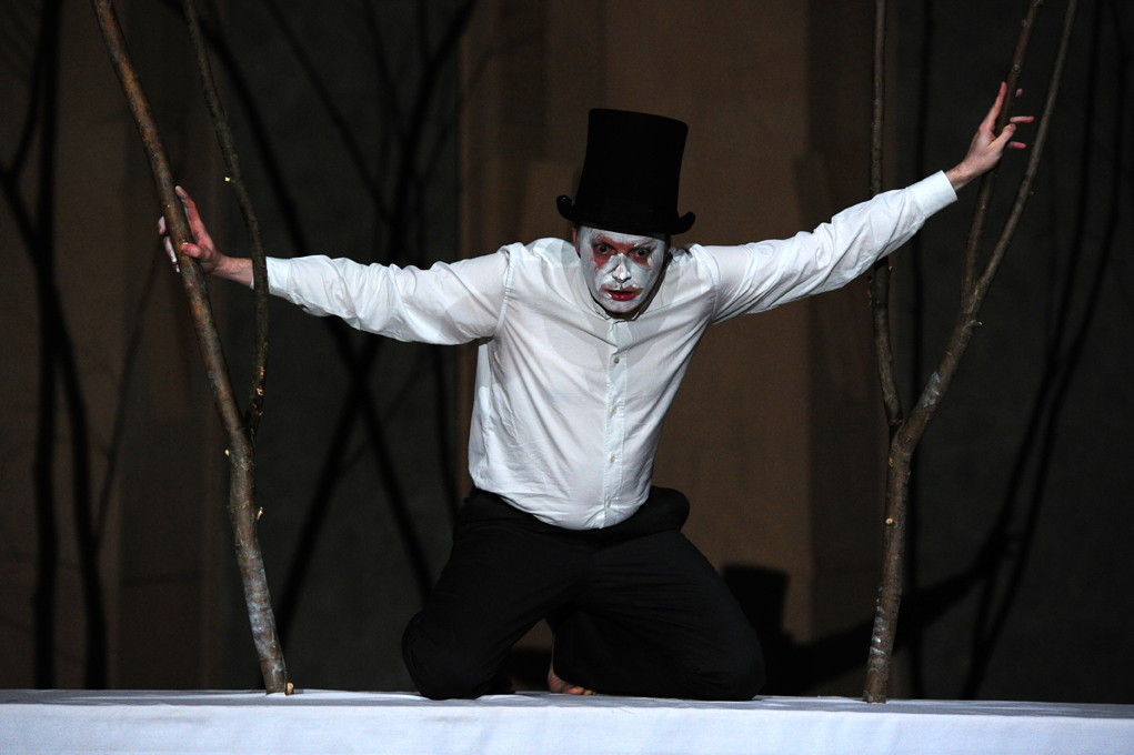 7-II-2014. Franz Schubert (1797-1828) : Winterreise, cycle de Lieder pour voix d'homme et piano ; Mark André (né en 1964) : AZ pour ensemble (CM). Georg Nigl, baryton ; Andreas Staier, piano ; Johann Simons, mise en scène ; Michaël Borremans, décors ; Jan Vandenhouve, dramaturgie ; direction : Julien Leroy.