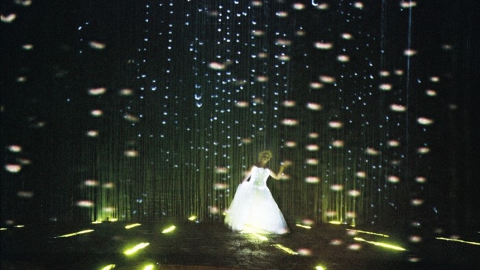 Scénographie d'un noir d'encre, seulement éblouie par le blanc d'une robe, celle de l'héroïne, première et dernière image que l'œil va percevoir. Sur le célèbre prélude, la robe seule s'avance avec une lenteur extrême du fond de la scène vers le pare-brise…oui, la robe seule, car on ne perçoit la tête de l'héroïne qu'au dernier moment, lorsqu'elle est tout près du « pare-brise ». C'est absolument fascinant. C'est bien sûr gonflé, d'autant que les deux heures qui vont suivre enfonceront tranquillement le clou de la radicalité du parti-pris. Pas un meuble ! Pas un accessoire ! Rien sur scène ! Que des fantômes… les têtes des choristes, hommes et femmes, de noir vêtus, sont même emballées dans des voilettes de gaze. Cette Traviata, entourée d'une foultitude de spectres masculins, plus qu'effleurée par Germont père, est de toute évidence seule dans sa tête surchargée de souvenirs… surchargée peut-être aussi de toutes les mises en scènes précédentes. Adieu les cossues Traviata croulant sous le luxe ! Bye bye Zeffirelli ! C'est le moment de mourir. « Au bout du compte, on est toujours tout seul au monde », disait la chanson. C'est seule et debout qu'on l'a vue apparaître. C'est seule et debout avec les deux hommes prostrés à ses pieds et disparaissant peu à peu dans le noir du plateau qu'elle entrera dans la mort.