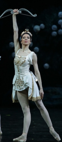 Le corps de ballet est très en place, et il reste juste à trouver une certaine décontraction dans les placements. On a beaucoup aimé les deux duos : au second acte, la reproduction quasiment parfaite des pas dans le Pas des deux esclaves ( respectivement Andrei Arseniev/ Oleg Demchenko et Nikita Lyashchenko/ Andrei Arseniev), et surtout l'attendrissant dialogue des chèvres montrent, là encore, que le Mariinsky ne plaque pas ce que de ce côté-ci de l'Europe, d'aucuns considèrent comme étant de la contrainte. Très belle puissance vengeresse de Diane également de Tatiana Tkachenko et capacités dramatiques proches d'un Abderahmane d'Andrei Yermakov viril en tous points.