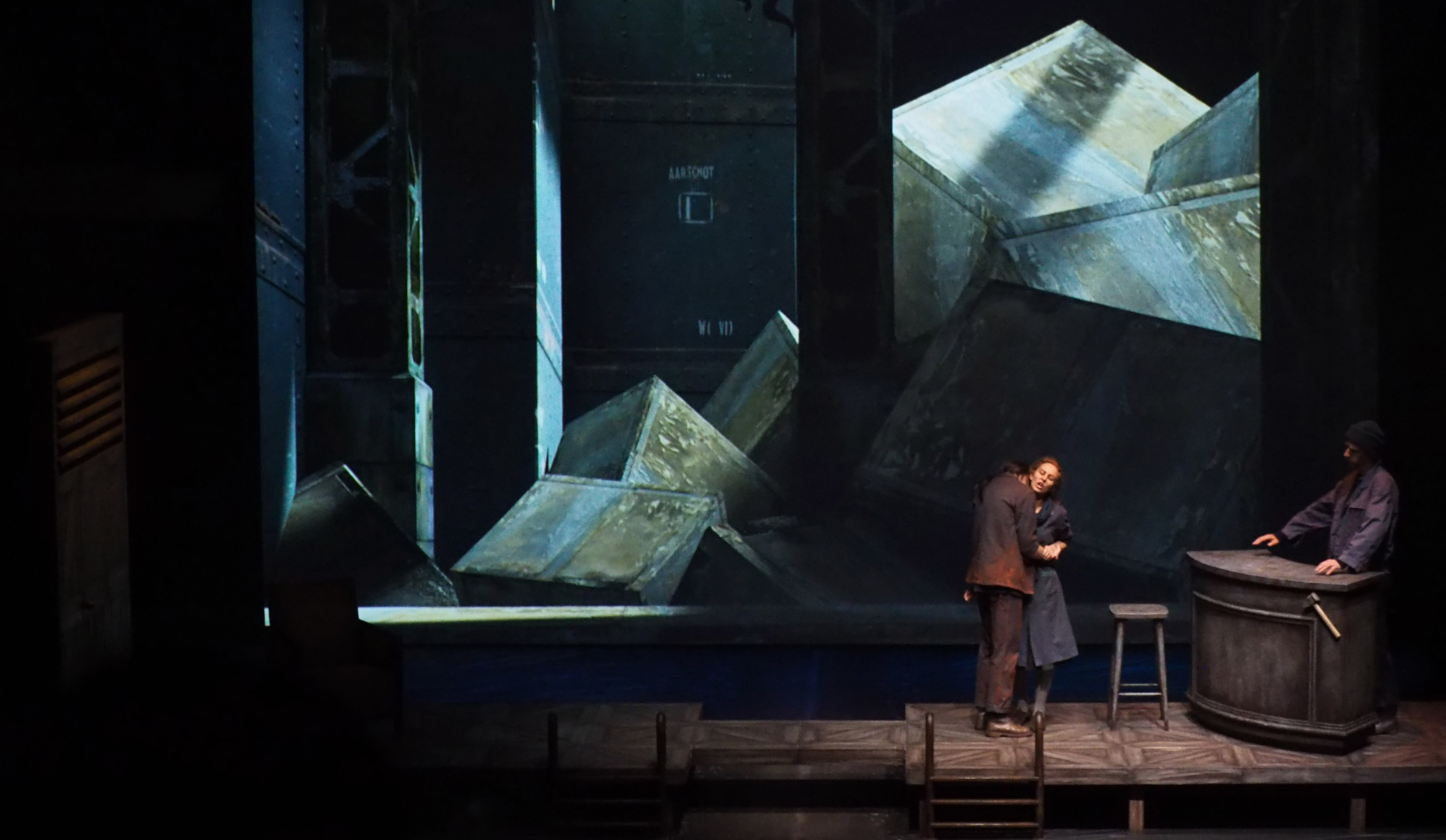 En revanche, pour Le Pauvre matelot, la performance vocale est largement satisfaisante. Parmi les quatre chanteurs, la soprano slovène Kristina Bitenc dans le rôle de la femme du matelot se distingue particulièrement. Sa voix a une puissance dramatique évidente, avec un timbre clair. Elle est entourée de trois voix masculines homogènes, chacune ajoutant leur part de gravité à ce drame humaine cruel : la femme, ruinée, qui attend le retour de son mari depuis quinze ans, tue pour sa richesse un marin se prétendant être un ami de l'époux, qui n'était personne d'autre que l'homme tant attendu… Le décor, simple mais efficace, est constitué de deux parties symétriques qui se communiquent : coté cour le bar de la femme et de son beau-père, coté jardin la maison de leur ami. Il y a également des images numériques au fond de la scène qui ne changent guère, évoquant des caissons dans les eaux (contenant des trésors ?). Cette fois, on assiste surtout à des jeux entre l'ombre et la lumière, comme l'ombre et la lumière dans le cœur humain.