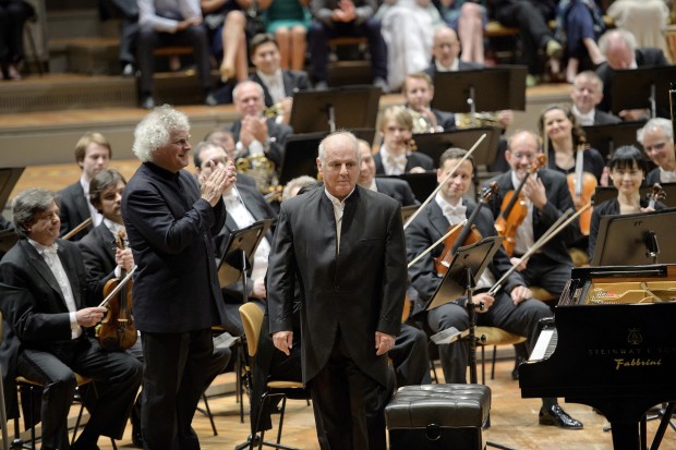 La pièce maîtresse de la soirée, à tout point de vue, vient seulement après l'entracte : le premier concerto de Brahms est d'autant plus attendu qu'il s'agit du cinquantième anniversaire des débuts de Daniel Barenboim à la Philharmonie de Berlin (à l'époque, c'était le premier concerto de Bartók, sous la direction d'un jeune chef appelé Pierre Boulez). Barenboim, directeur musical de la Staatsoper de Berlin depuis 1992 avec une emprise institutionnelle comparable seulement à celle de Gergiev au Mariinsky, est une figure incontournable à Berlin, et cela seul suffit à expliquer les ovations debout qui saluent la fin du concert, par ailleurs diffusé sur Internet et même au cinéma.