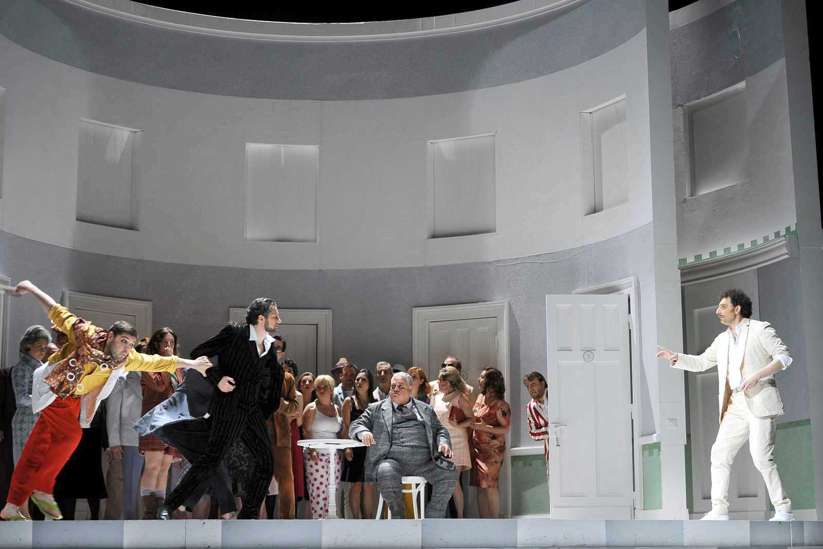 Aucun des éléments de la nombreuse distribution ne démérite jamais, même si les difficultés hérissant les parties vocales les contraignent parfois à faire passer le jeu scénique au second plan. Centre de l'histoire, le Don Felice d'Alessandro Luongo fait valoir un solide et élégant timbre de baryton et une belle présence. Plus malmené par une tessiture bien plus tendue dans l'aigu, le Ciccillo de Bruno Taddia est parfois couvert par l'orchestre. Milena Storti est parfaite en veuve foldingue cherchant à tout prix à marier sa fille maladivement timide. On remarque entre autres le Raffaele de Valeriu Caradja, intense et marquant dans son obsession à interpréter Otello, le Michelino de Giuseppe Talamo, timbre de ténor un peu ingrat mais puissant et facile, ou le toujours truculent Bruno Praticò désormais sans voix dans le court rôle de Carlo, le patron de la Pension Stella.