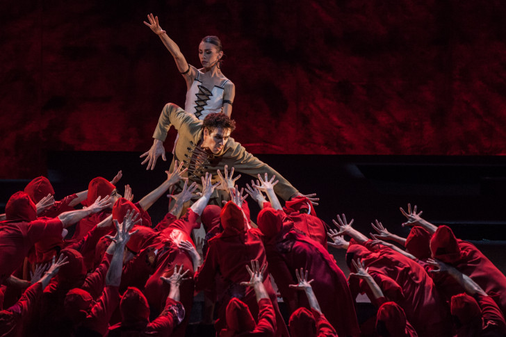 Le corps de ballet, très à l'aise dans cette chorégraphie inclassable, campe un peuple voyeur, versatile, inquiétant, incapable de discerner le bien et le mal.