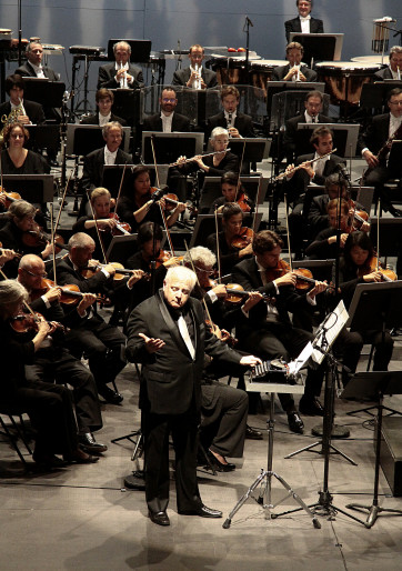 Deux parties dans le concert dirigé par Leonard Slatkin, directeur musical de l'Orchestre national de Lyon. Pacific 231, la géniale partition d'Honegger (au fait à quand un Festival Honegger?) est dirigée on ne peut plus spectaculairement et permet de se réjouir d'emblée de la superbe acoustique du dôme installé depuis 2003 le temps du Festival dans la cour du Château Louis XI. Aussi décoiffante, la méconnue Iron Foundry composée par le russe Alexandre Mossolov pour le 10ème anniversaire de la révolution russe. Dans son arbre généalogique, le chef américain projette idéalement la jubilation de Short Ride in a Fast Machine de John Adams avant de donner libre cours à son humour en invitant l'orchestre à jouer de courtes pièces plus connues que leur auteurs telle The Typewriter où il interprète lui-même la partie de soliste sur…une machine à écrire ! Il va même jusqu'à faire miauler le public : gros succès bien sûr. La seconde partie est consacré au mythe Roméo et Juliette des 2 côtés de l'Atlantique. Bernstein, Rota, Prokofiev, et Tchaikovsky (cherchez l'absent!). La geste de Slatkin est tout aussi impressionnante à la tête d'un orchestre devenu au fil des ans une magnifique machine lui aussi.