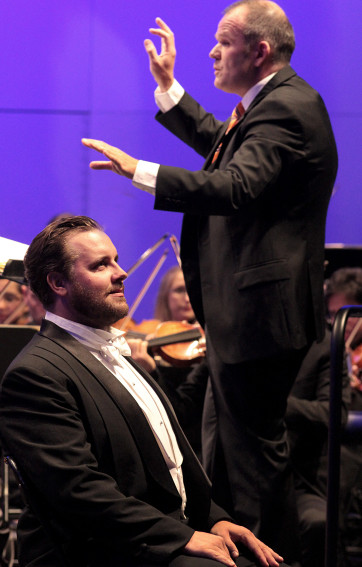 _MG_5297 copieA ce niveau d'excellence orchestral et choral, que va-t il en être des solistes, eux aussi très sollicités par l'exigeante partition ? Disons de suite que l'on est littéralement cueilli sur notre siège par le Faust absolument bluffant de . Américain, le ténor ? On peine à le croire tant la prononciation, si souvent pierre d'achoppement de tant de titulaires du rôle, rend caduque la tendance à la déploration de bien des confrères face aux distribution non francophones de bon nombres d'ouvrages français. Très loin ce soir du « Vous pouvez m'arrêter, c'est moi qui l'ai touillée » hurlé par James McCracken à la fin d'une certaine Carmen  dirigée par Bernstein (DGG), Spyres , au moyen d'une voix extrêmement puissante (on se dit même un instant que l'on aurait volontiers imaginé le placer au sein de l'orchestre plutôt que devant ce dernier) offre une leçon de diction, de concentration tranquille, de lyrisme berliozien rare. Aucune note de la partition (qu'il énonce par coeur) ne lui pose problème. Aucun effort apparent à chanter ce rôle qui demande tant. La soirée durant, jouant discrètement le personnage par un simple port de tête, une simple façon de s'asseoir, des regards, des sourires, il sera imprégné de tous les affects du rôles…il ira même jusqu'à laisser couler de vraies larmes! D'un romantisme serein , tout de bonté paisible, Spyres est le Faust de Berlioz.
