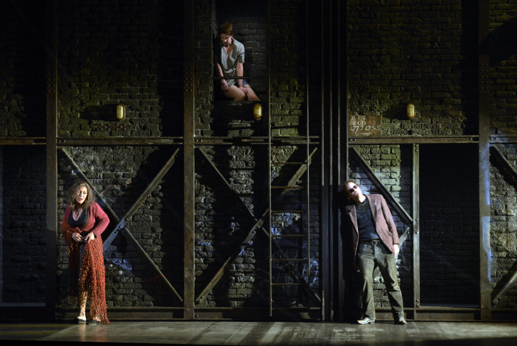 La mise en scène et les décors – ceux de Bruno de Lavenière – ne sont pas sans rappeler les options de Patrice Chéreau. Kristian Frédric cerne les zones d'ombre dans lesquelles évoluent les personnages. La monumentalité des panneaux qui se referment brusquement dans les premières minutes de l'opéra saisit d'emblée. Les trente séquences s'enchainent dans un rythme presque cinématographique – on pense à Wozzeck – jouées sans pathos et avec une tension toujours soutenue. Le viol de Claire que l'on entend sans voir, du dernier étage d'un décor métallique, constitue le point crise du scénario, noué par l'intervention du choeur sur les cris de la jeune femme et une rafale de coups de feu entendus à l'extérieur.
