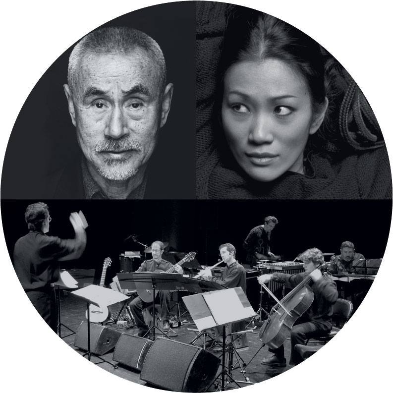La scène ressemble à un plateau ouvert, on voit à gauche deux marionnettes de jeunes femmes, qui semblent être sœurs jumelles, et à droite, un objet métallique représentant un pin, avec une forme très figurative. Derrière cette scène, séparés par un voilage, les musiciens apparaissent et disparaissent selon les jeux de lumières. L'ensemble est constitué de flûtes, d'une guitare, d'un violoncelle et de percussions avec un xylophone et un vibraphone. La musique est souvent faite d'une combinaison de deux ou trois instruments, notamment le violoncelle et une des flûtes. Par moment les flutes et les percussions sonnent comme des instruments traditionnels japonais (ryuteki, taiko…), mais on ne sait s'ils les jouent réellement ou si c'est une imitation sur un instrument occidental. Une notion d'ambiguïté donc, malgré une musique descriptive qui correspond nettement à l'action et aux mouvements des personnages.