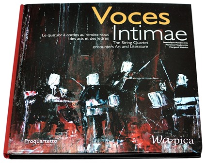 Voces Intimae, le quatuor à cordes au rendez-vous des arts et des lettres. Dominique Huybrechts, Florence Huybrechts et Margaux Sladden. Editions Wapica. 132 pages. En vente sur le site internet du festival Proquartetto.be.