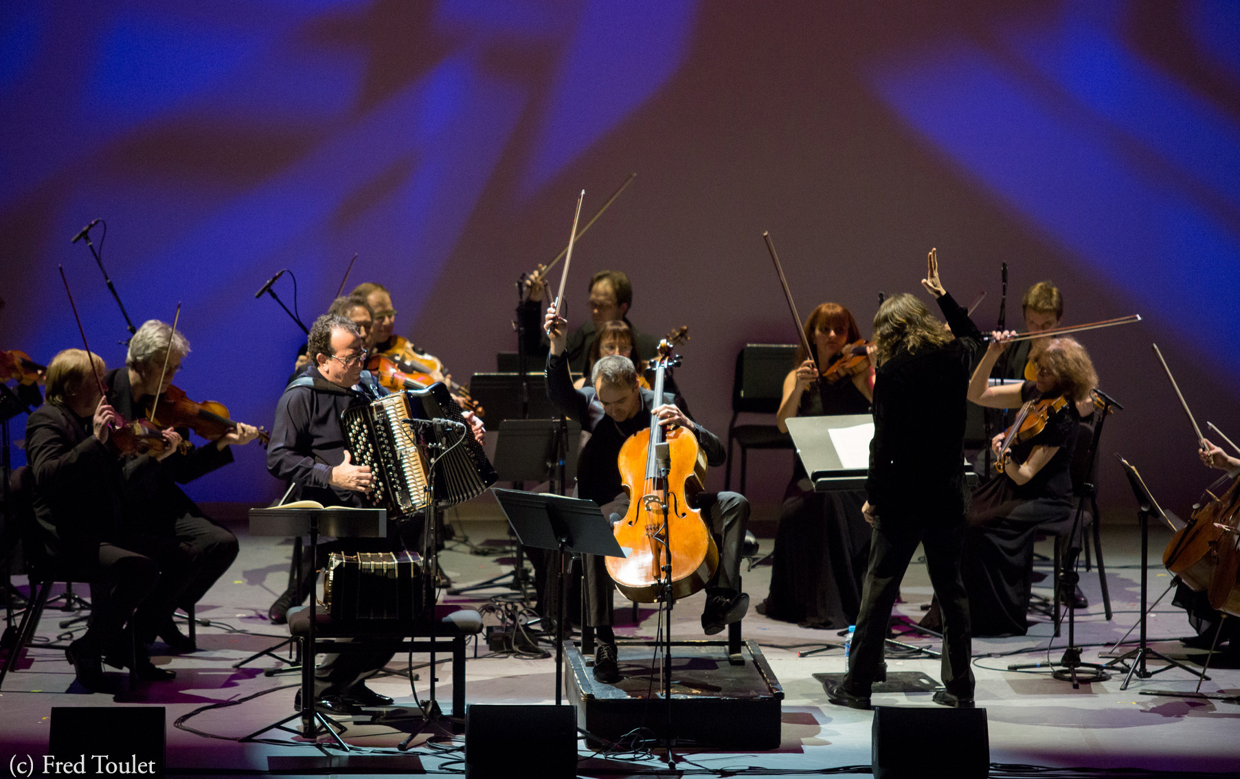 Que se passe-t-il quand Richard Galliano, un grand nom de l'accordéon, héritier d'Astor Piazzolla qui était son mentor, et Henri Demarquette, un violoncelliste classique au talent incontestable, donne un concert commun avec un orchestre de chambre ? Ce concert offre une réponse qui se résume en un éclectisme musical de qualité.