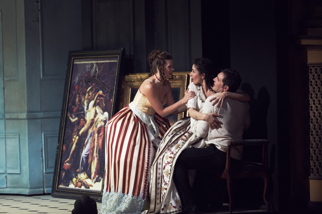 C'est de toute évidence l'option choisie par le metteur en scène Joël Lauwers, même si ce dernier ne laisse pas entièrement de côté la composante orientalisante de l'œuvre. La chorégraphie, les décors et certains costumes évoquent sans ambiguïté le monde oriental, même si Osmin est vêtu d'un complet-veston et si c'est en smoking blanc que le Pacha Sélim apparaît en toute fin d'ouvrage, pour la scène du pardon. Le décor, en revanche, avec ses boiseries dix-huitième siècle, reste éminemment occidental. L'idée générale est donc de s'attacher à la complexité, aux doutes et aux contradictions des principaux personnages, notamment des deux jeunes couples européens qui, à l'instar des protagonistes de La flûte enchantée, traversent un certain nombre d'épreuves avant de regagner leur Europe natale. Belmonte, par exemple, pourrait bien être tenté par la beauté de certaines des habitantes du harem et Konstanze pourrait elle aussi éprouver pour Sélim sinon de tendres sentiments du moins un désir bien réel. Les scènes situées dans une sorte de hammam ne laissent planer aucun doute sur l'ambiguïté de leurs relations, tout comme celles entretenues entre Osmin et Blonde sous les yeux écarquillés d'un Pedrillo réduit à tenir la chandelle. Ces choix de mise en scène, que rien dans le texte ne justifient réellement, donnent il est vrai quelque fondement au quatuor du deuxième acte, ce moment où les deux ténors demandent des compte à leur belle. Mais l'impression générale est que trop d'explicitation nuit à la magie de la musique, et que ces vaines tentatives de remplissage finissent vite par encombrer et par saturer le plateau.