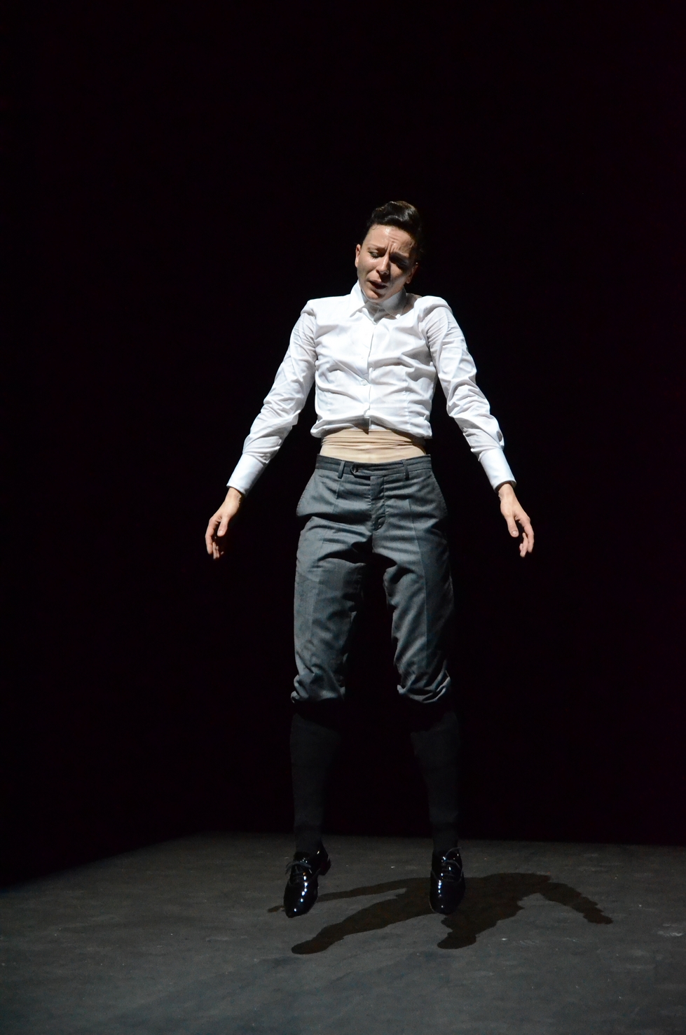 Elégante, racée dans un pantalon anthracite et une chemise blanche près du corps (costumes de la créatrice Véronique Branquinho), Lisbeth Gruwez est posée au centre d'un rectangle de lumière. Altière, elle ressemble à une torera ou à une cavalière, sévère et concentrée. Sa maîtrise de chaque inflexion, de chaque geste, de chaque nuance du discours rend son solo absolument fascinant.