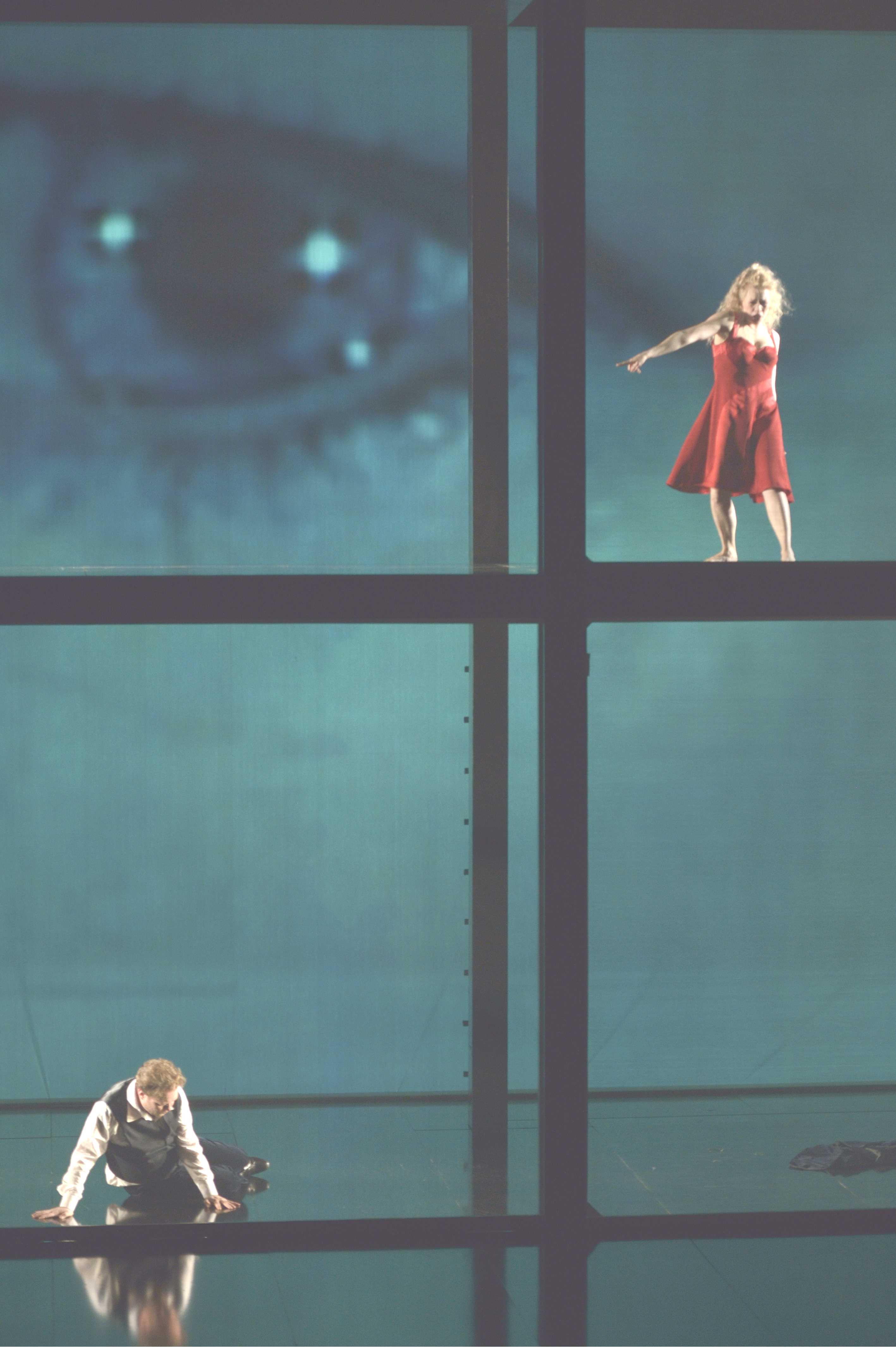 De plus, la mise en scène de Philipp Himmelmann frappe toujours autant par l'intelligence de sa lecture comme par la précision de sa réalisation. Paul, le veuf inconsolable, et Marietta, la danseuse dans laquelle il imagine retrouver son épouse disparue, évoluent sans se croiser dans des univers parallèles, matérialisés par les cases juxtaposées et identiques de l'imposant dispositif scénique conçu par Raimund Bauer, mais inter-réagissent à distance et en permanence. Car toute l'histoire ou presque n'est qu'un rêve issu de l'univers mental et dépressif de Paul. Même Franck, l'ami indéfectible, même Brigitta, la servante fidèle, apparaîtront toujours isolés et comme fantomatiques dans leur solitude. L'entrée des comparses de Marietta au deuxième acte est de même dénuée de tout réalisme, à mi-chemin entre songe et cauchemar, entre Nuit des morts vivants et Rocky Horror Picture Show. Et lorsqu'à la fin du premier acte Paul croit voir s'animer le portrait de sa femme Marie et entendre sa voix, la vidéo de Martin Eidenberger a conservé toute sa magie et fait toujours très forte impression.