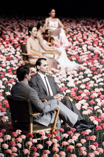 Aujourd'hui, la chorégraphe n'est plus là, mais la pièce culte est reprise avec beaucoup de nouveaux danseurs ou de danseurs invités. Des femmes en robe du soir, des hommes en costumes trois pièces, c'est tout l'univers de Pina Bausch, dont l'accent nostalgique et moqueur s'épanouit dans ce décor d'œillets faussement romantique et faussement tendre. La dimension enchanteresse du décor est propice aux contes de fées, aux lapins qui gambadent, aux parties de 1, 2, 3 soleil ou aux rondes enfantines.