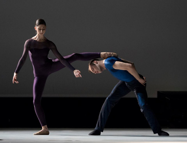 Au programme de cette première saison placée sous la houlette de Nacho Duato, le public a eu l'heureuse malchance de découvrir trois premières de… Duato ! Non pas que ces pièces soient totalement dépourvues d'intérêt (quoique pour Dornröschen, peut-être…), mais le spectateur n'a pu que déprimer face à la maigre variété des chorégraphes programmés : « Whaouh, Duato. Ok, Duato. Encore, Duato ! » Comment peut-on laisser un intendant imposer sa politique mégalomane sur une jeune troupe, farouchement talentueuse, qui ne demande qu'à TOUT danser ? En entrée, Nacho Duato a eu la grandeur d'âme de nous offrir sa toute première création avec les danseurs du Staatballett. Static Time, rythmé par W.A. Mozart, S. Rachmaninov, F. Schubert, P. Alcalde et S. Caballero, se compose de huit danseurs, trois femmes et cinq hommes. Le chorégraphe est indéniablement influencée par Kylián. Les mouvements sont fluides, légers et puissants à la fois. Les fréquents rapports au sol, combinés à de virtuoses portés, rend la chorégraphie étonnement foisonnante. Le duo masculin Arshak Ghalumyan / Dominic Hodal fait fusionner, tout en à-coups, ces deux corps monumentaux, en parfaite symétrie. La gestuelle est peut-être trop enchevêtrée et Duato gagnerait à traiter le mouvement d'une manière plus dépouillée, plus intelligible. Niveau décor, les danseurs se font happer par une sorte de matrice, en fond de scène, non identifiée tant le plateau demeure sombre. Les costumes sont tout aussi obscurs. À en juger à la comm' du Staatsballett et aux trois pièces duatesques au menu en 2015, on aura compris que la couleur préférée de Duato demeure à tout jamais… le noir ! N'en déplaise aux plus optimistes.
