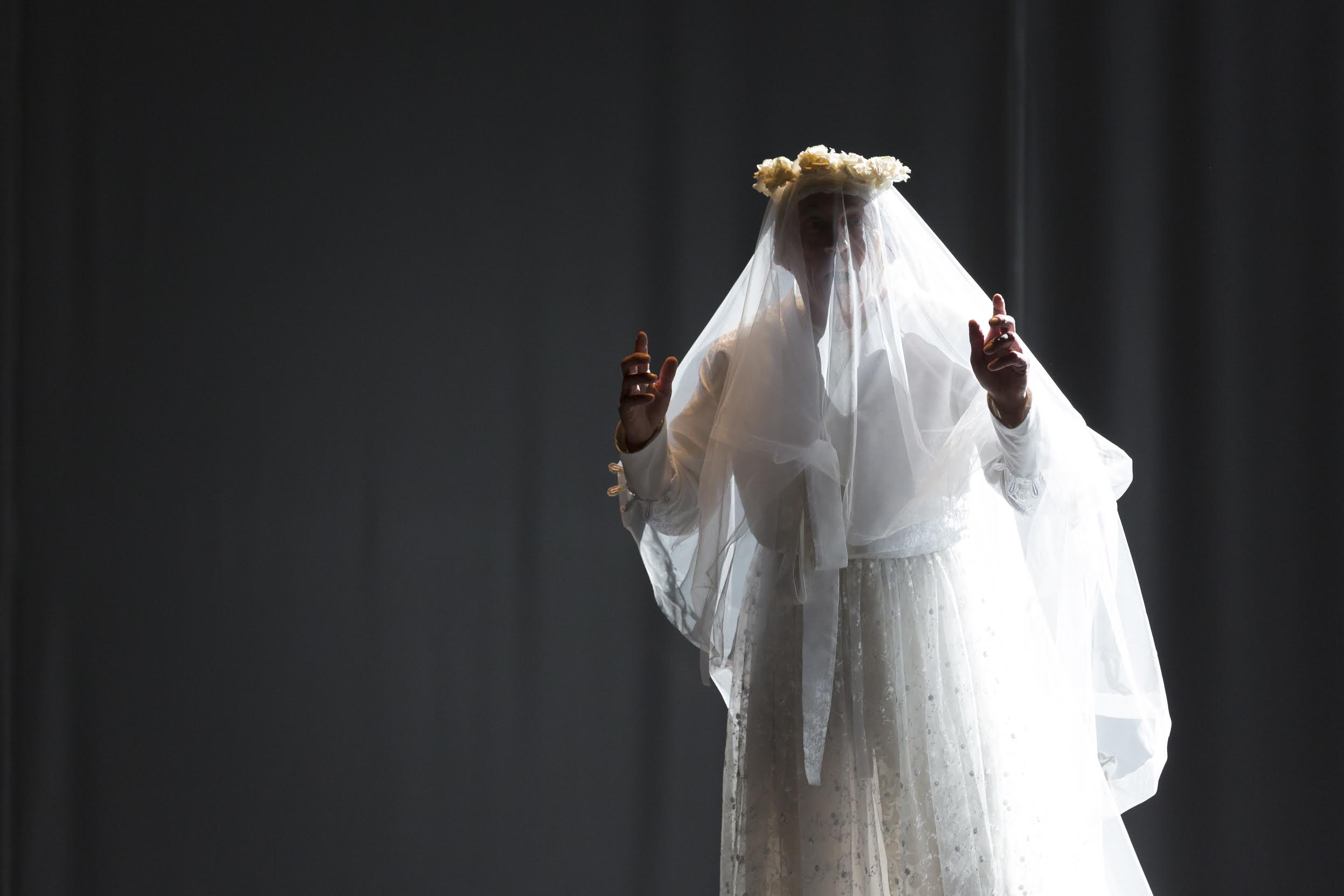 Dans la belle mise en scène de Jacques Osinski, jouant de cette ambiguité latente, Elsa est un homme – l'acteur belge Johan Leysen exceptionnel – apparaissant dans une robe de mariée dont il va progressivement se libérer jusqu'à la nudité totale. Captivante la façon qu'il a d'exploiter sa voix dans tous les registres, les variations de rythme et la dimension sonore envisagés par le compositeur. Dans l'épilogue saisissant, alors que trois infirmiers (le choeur) sont venus lui passer la camisole de force, Elsa entonne une cantilène dernière…