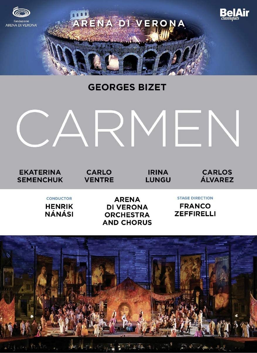 Quelques années seulement après avoir eu les honneurs du DVD, la mise en scène à grand spectacle de Carmen par Franco Zeffirelli aux Arènes de Vérone bénéficie d'une nouvelle captation, avec un meilleur plateau vocal qui tient ses promesses.
