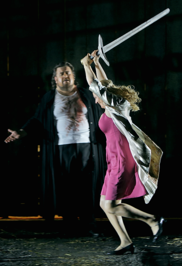La magnificence du plateau éclate dans un premier acte tendu à se rompre. Johan Botha est un Siegmund très attaché à l'élément de puissance sonore de la voix. L'incarnation est un rien en retrait tandis qu'il sait trouver dans la confrontation et le défi que lui propose la Sieglinde incendiaire d'Anja Kampe, tous les moyens d'exprimer son talent. Difficile d'oublier ce soir que la soprano allemande a tous les moyens qui lui offriraient une Brünnhilde ou même une Isolde. Son « O hehrstes Wunder ! » aux limites de l'hystérie est absolument engagé et terrifiant – un vrai délice. La Brünnhilde de Catherine Foster est d'une égalité et d'une homogénéité de ligne très étonnante. En bien meilleure forme que les deux précédentes éditions, elle sait faire oublier des hojotoho à l'intonation douteuse, notamment quand la ligne s'allonge, favorisant la caractéristique de l'endurance. Face à elle, Wolfgang Koch affirme autorité et présence – principalement dans le monologue du II, où la maîtrise de la transition entre sprechgesang et voix chantée fait merveille. Claudia Mahnke est une Fricka qui sait muer un legato très affirmé en impressionnants accents vipérins. Le Hunding de l'inusable Kwangchul Youn allie la noirceur du timbre à de remarquables moyens expressifs. Filmées sur écran à la manière d'une foule en colère, le groupe des walkyries se donne également à voir d'un bout à l'autre de l'impressionnant décor d'Aleksandar Denić. Dans cet ensemble très homogène et parfaitement à l'aise dans le jeu très expressif, on notera la présence tonitruante et aérienne d'Allison Oakes (Gerhilde), Christiane Kohl (Helmwige) et la Grimgerde de Simone Schröder.
