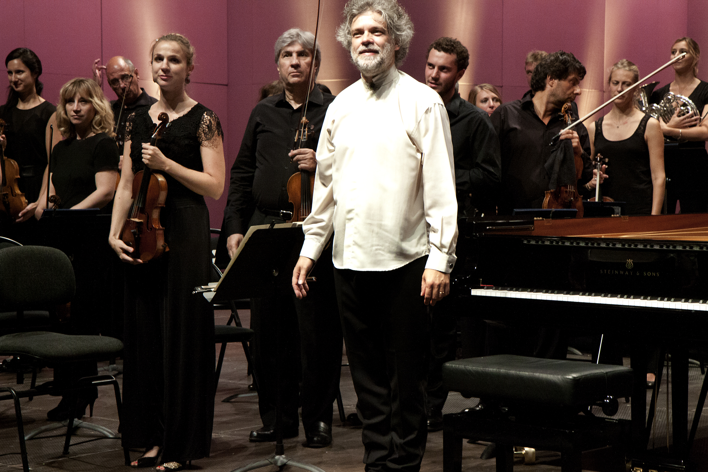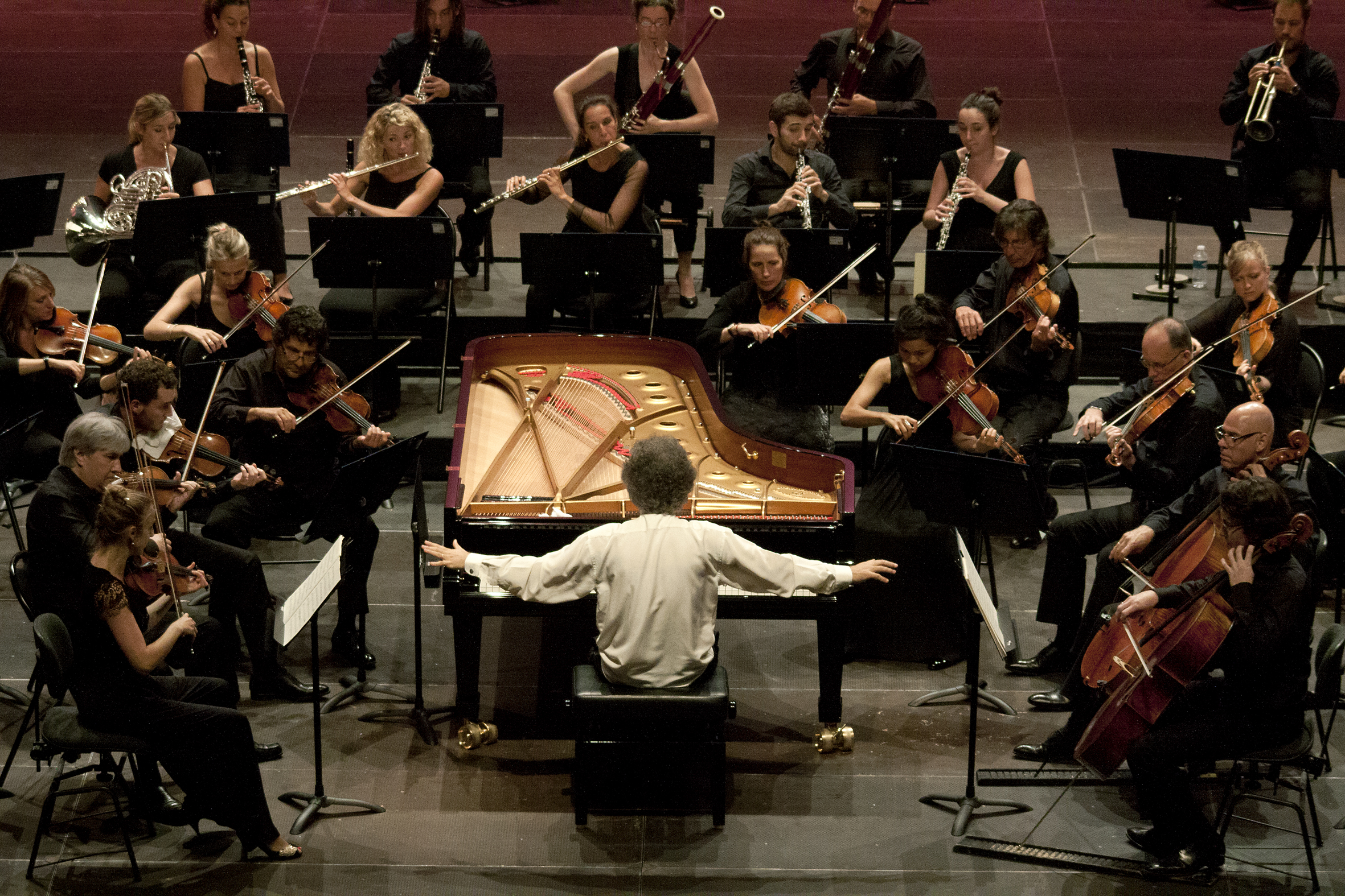 Passion est le maître mot. Passion d'Hector pour Ludwig. Passion de François-Frédéric pour l'un et l'autre. Cela ne peut que générer le genre d'étincelles qui fait les soirées historiques. De fait l'on sait très vite que le pari de François-Frédéric Guy est gagné. Le pianiste impulse d'emblée au Concerto n° 1 une puissance annonciatrice de l'Empereur conclusif. Jamais comme ce soir l'on n'avait remarqué combien le « Largo » de l'opus 15 nous projette déjà dans l'immobilité contemplative de l' « Adagio » de l'opus 73. L'on s'émerveille d'emblée des contours de l'Orchestre de Chambre de Paris. Des cors en majesté. Une clarinette en état de grâce. Des trompettes et des timbales aux effets parfaitement calculés. Des attaques de cordes précises, pleines et lisibles. L'on découvre les mille et une attentions portées à chaque phrase de ces œuvres qui ont fait entrer en musique bien des mélomanes. Le tout est architecturé par un pianiste idéalement nuancé, entre autorité et méditation. De dos face à un Steinway décarapaçonné, heureux comme un enfant face aux potentialités de son jouet, démiurge bienveillant, François-Frédéric Guy navigue avec talent entre clavier et direction d'orchestre. Guy de dos, Beethoven en pleine figure, assurément !
