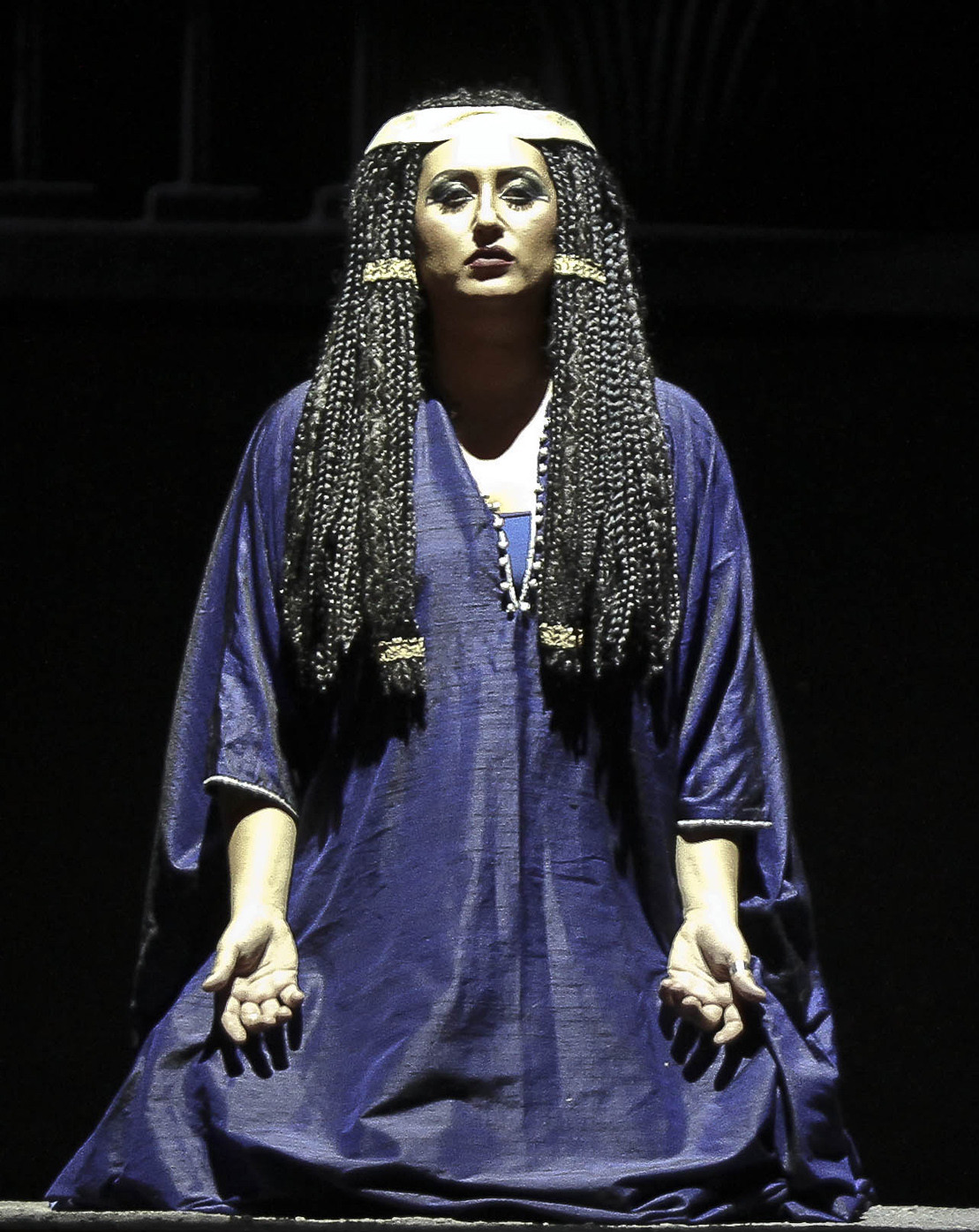 On commençait à sérieusement s'ennuyer, voir à se fâcher devant tant d'imprécisions vocales et de « malcanto » des deux principaux protagonistes quand, le miracle se produisit avec le quatrième acte mettant en scène la mezzo soprano Anita Rachvelishvili (Amneris). Tout à coup, le rêve de l'opéra prenait corps. La scène s'effaçait laissant place à un théâtre enveloppant. Avec une présence vocale imposante la jeune femme submerge l'audience d'un « Gia i Sacerdoti adunansi » suivi d'un bouleversant « Morire ! Ah, tu dei vivere ! ». Quelle largeur de voix, quelle puissance expressive, quelle profondeur dans cette voix qui, tout à coup, fait prendre conscience de l'intensité des pages verdiennes. En véritable artiste, Anita Rachvelishvili emmène le public dans son drame, dans sa jalousie, dans sa quête d'amour, avec une authenticité débordante. Son chant emporte tout sur son passage, l'orchestre se sublime, pour offrir les instants les plus émouvants de cette soirée.