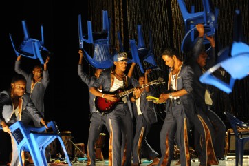 Sur le plateau pendent des rideaux de douilles de munitions. Évoquent-ils, tout en métaphore, une réalité congolaise minée par la guerre ? Le sculpteur Freddy Tsimba a voulu transmettre un message, à peine visible mais toujours profond : on doit se souvenir des nombreux morts, devenus imperceptibles, qui peuvent étrangement donner vie à un spectacle. Géniale idée ! Une sorte de « coup fatal » qui régénère les chairs, la vie, éternellement. Libre à vous d'interpréter les constellations d'allusions et de symbolismes. Petit bémol : la danse est reléguée au second plan, la performance étant fondamentalement orientée musique. Les deux chanteurs s'aventurent toutefois dans le public pour inviter deux demoiselles à danser. Peut-être un brin racoleur. Tout comme cette fois où ils recommencent à titiller l'assistance, en enjambant les sièges pour tenir les mains (blanches) des spectateurs sur To Be Young, Gifted and Black de Nina Simone. Peut-être trop facile. Il n'empêche que les musiciens et leurs charismes envoûtants scotchent : mimiques possédées, muscles suintants, dos sinueux, déhanchés obsédés… Les Congolais, comme le souligne Serge Kakudji, ont indéniablement « la foudre dans le regard et le mouvement dans les jambes, déjà dans le ventre de leurs mères ».