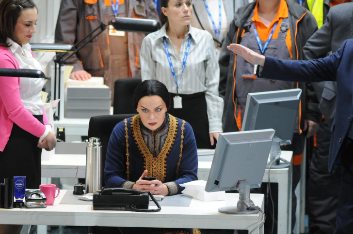 La ritualisation systématique revient dans le travail de Tcherniakov pour souligner la distance qui se crée entre réalité et vision distanciée. On perçoit la continuité des gestes et des déplacements comme autant de signes d'un ennui moderne, mortifère et incapable de distinguer causalité ou finalité. Scéniquement et vocalement bouleversante, la soprano Aušrinė Stundytė possède sa Katerina avec une autorité et une énergie comparables à sa récente Vénus dans le Tannhäuser de Calixto Bieito à Gand. La puissance expressive se double d'une maîtrise parfaite des difficultés techniques du rôle, alternant abattage suicidaire et ampleur sensuelle. John Daszak incarne un Serguei à la ligne véhémente et presque brutale. Il sait rendre parfaitement la vulgarité et la pourriture morale de son personnage, passant du statut d'employé arriviste à celui d'amant prêt à tuer pour monter les degrés qui le séparent du pouvoir.
