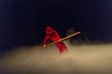 , aujourd'hui davantage plasticien que chorégraphe, a un sens aigu de l'image. Avec quelques effets ou quelques accessoires, il crée une vision, un univers scénique. Dans Attends, attends, attends… (pour mon père) écrit pour le danseur Cédric Charron, il lui suffit d'une machine à fumée et d'une puissante extraction pour évoquer le Styx et celui qui faisait traverser les morts : Charron. En costume et haut chapeau rouge, le danseur se cambre à l'extrême en appuyant sur son bâton, geste auguste du batelier d'outre-tombe. Cette vision est le support d'un monologue en français sur le passage de la lumière à l'ombre, mais aussi une adresse au père de l'interprète. Le regard halluciné du danseur, son physique dégingandé provoquent un effet d'outre-tombe et une assimilation parfaite de Cédric Charron au personnage qu'il est devenu.