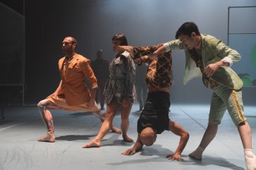L'atout maître du spectacle, décalé et déconstruit, réside cependant dans sa musique. La partition est signée Yanis Kyriadikis, et propose un parfait équilibre entre les percussionnistes virtuoses de Slagwerk Den Haag et les chanteurs polyphoniques de Silbersee. C'est magnifique… Multicartes, ils s'insèrent sur scène dans les pas des interprètes, se glissent dans un aquarium à roulettes, soutiennent les danseurs dans leurs acrobaties, pour un spectacle total et puissant.